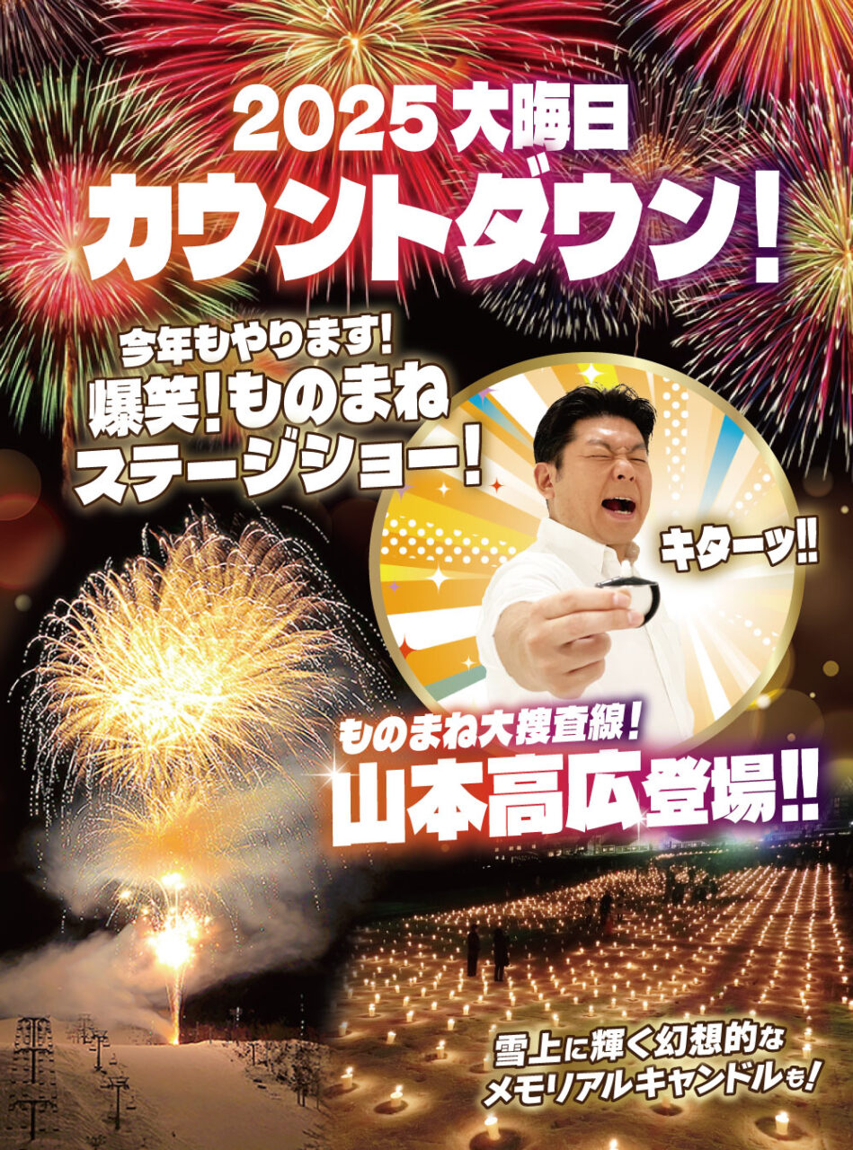 2025年の締めくくりと新年の幕開けは、ゲレンデで爆笑のひと時を過ごしましょう! 年越しの夜を華やかに彩るスペシャルゲストに、実力派ものまねタレント・山本高広さ...